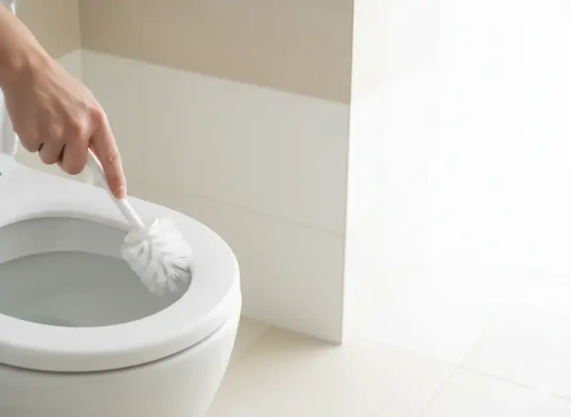 - Scrub toilet inside and out. Don’t forget hinges and base—these often get overlooked.