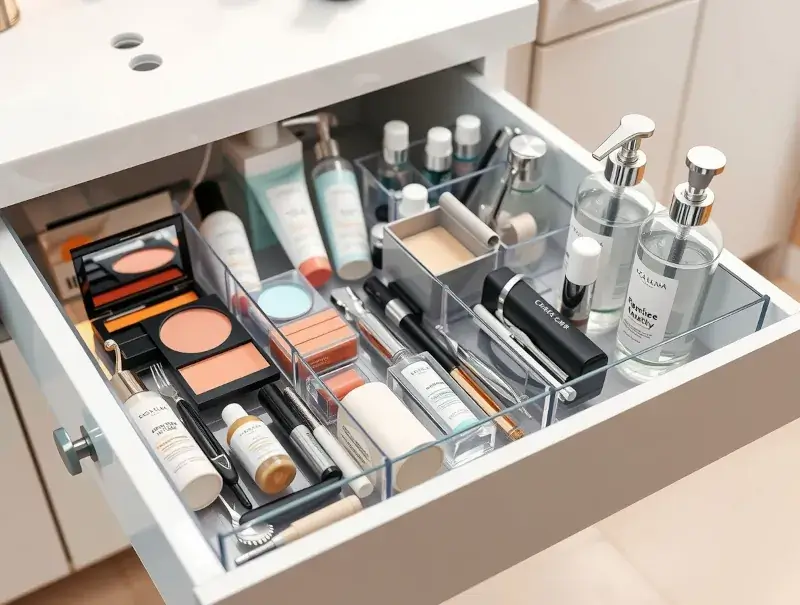 - messy under-sink cabinet → organized drawers