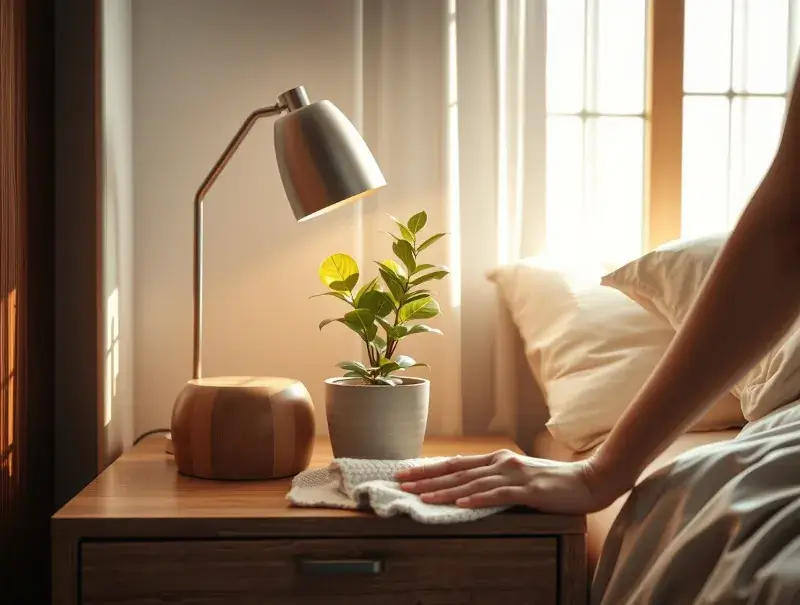 Clean lampshades and light fixtures every few weeks—dust blocks light and makes rooms look dull. Fresh lighting makes even a small bedroom feel cozy.