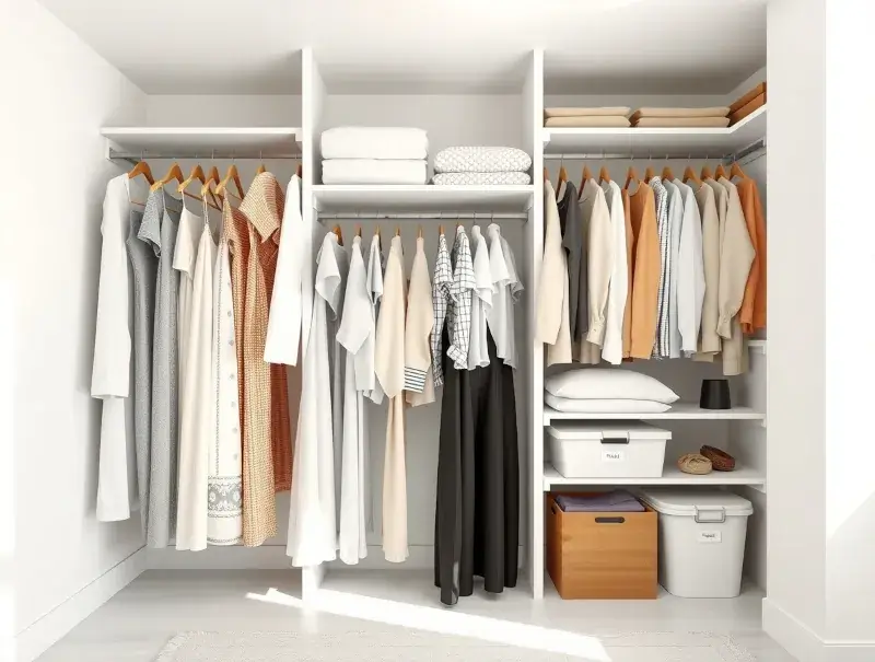 Bedrooms feel messy when closets overflow. Do a quick seasonal check: donate unused clothes, fold neatly, and use bins or dividers.
