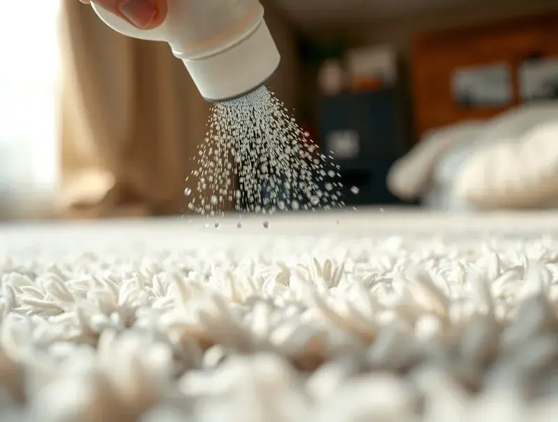 Sprinkle baking soda over dry carpet, let it sit for several hours, then vacuum thoroughly. Baking soda absorbs odors rather than masking them.