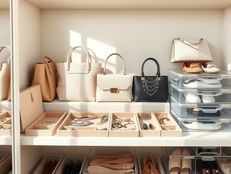 Accessories often cause the most clutter. Keeping them zoned prevents them from spreading across the entire closet.