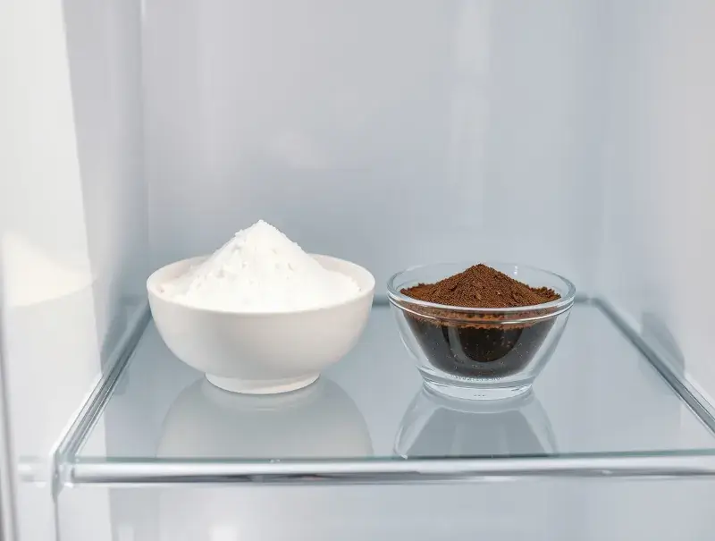 For stronger odors, place an open bowl of baking soda in the fridge overnight. Baking soda absorbs odor molecules naturally and safely.