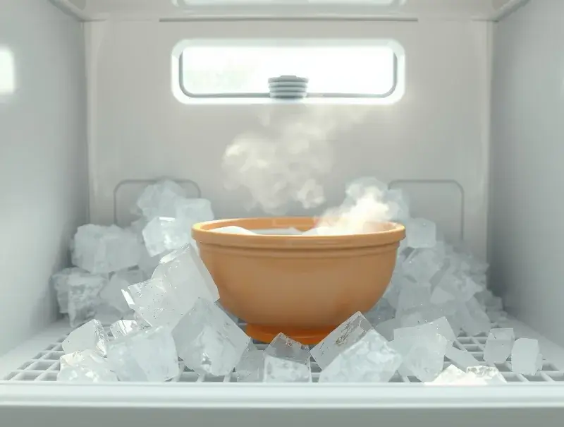 If your freezer needs defrosting, place a bowl of hot water inside and keep the door closed. This helps soften frost quickly. Wipe out melted frost with a towel.