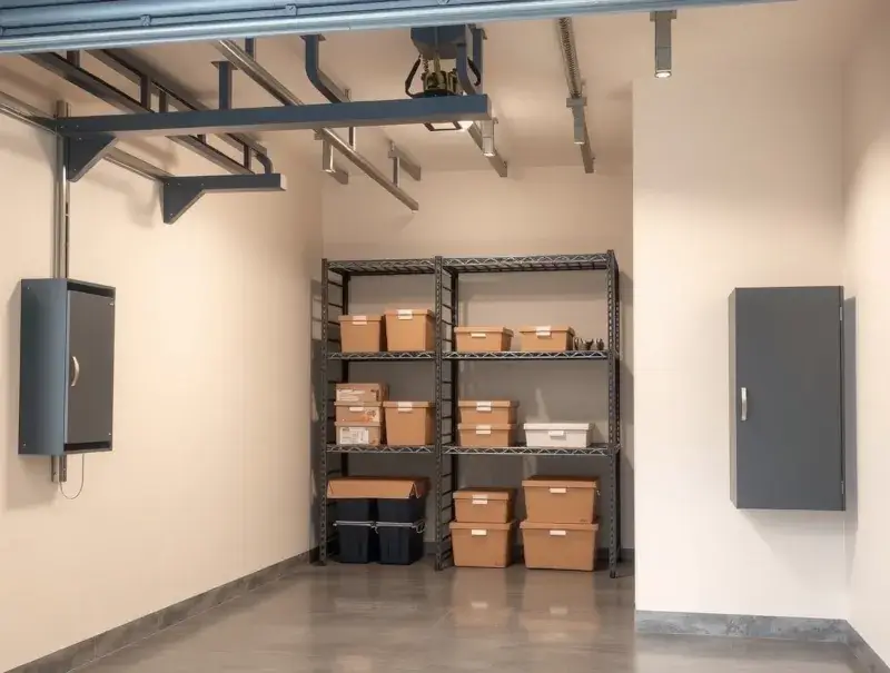 If your garage is small, overhead storage can be a game-changer. Ceiling-mounted racks or rails hold lightweight but bulky items like camping gear or holiday decorations. Utilizing ceiling space keeps your floor clear for parking, walking, or workspace activities.