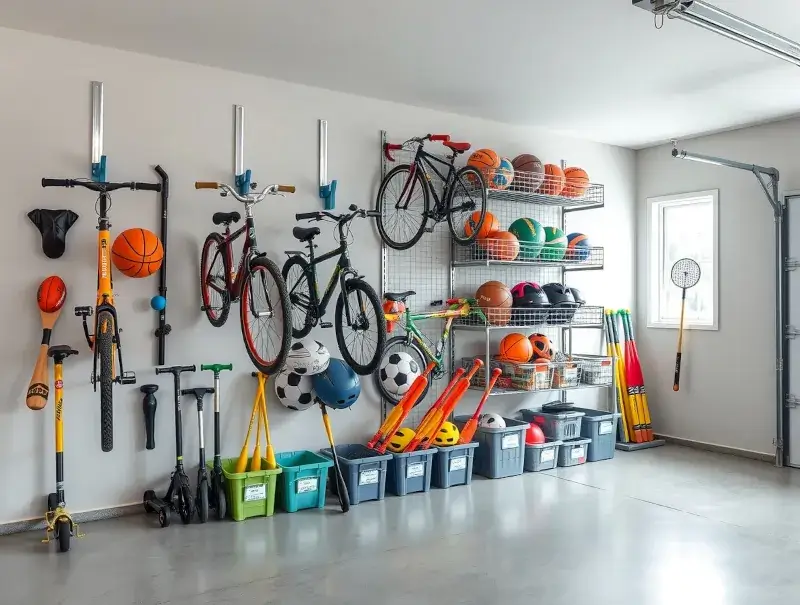 Loose items like basketballs, soccer balls, and jump ropes often roll under cars or pile up in corners. Racks or vertical ball holders keep gear neat and easy for kids to grab. Mesh nets or open bins can store miscellaneous toys, making cleanup simple and fast.