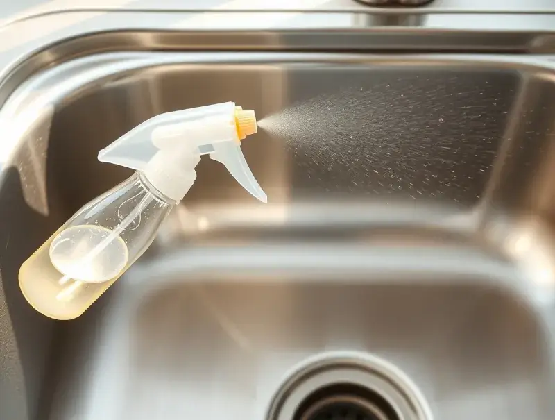 Spray vinegar directly onto the stainless steel surface and let it sit for 3–5 minutes. The acidity dissolves mineral deposits, making them easier to wipe away.
