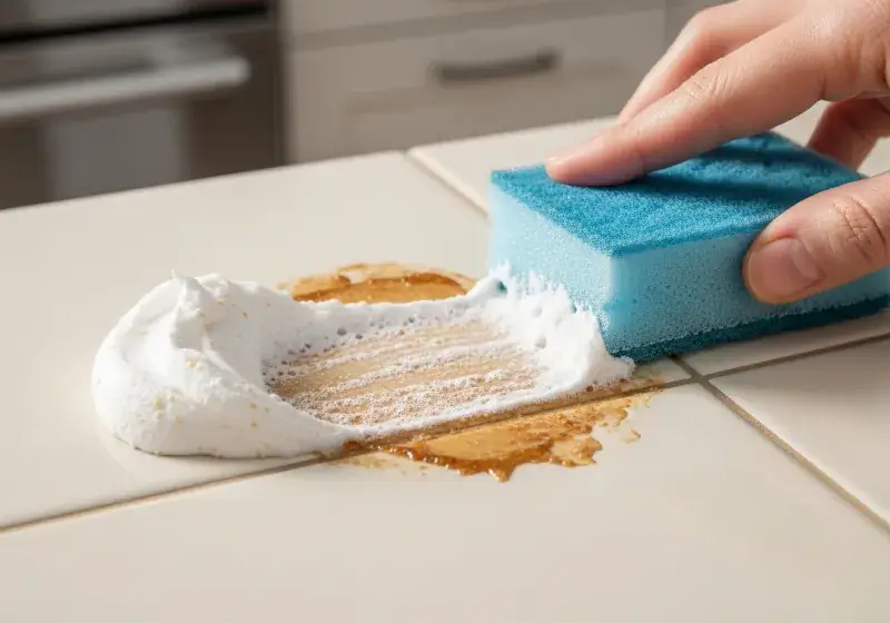 For patches of grease or sticky spills, apply baking soda paste and scrub gently with a sponge. Baking soda lifts residue without scratching your tile. Rinse thoroughly afterward.
