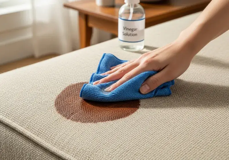 6. For stubborn pigment, spray lightly with vinegar solution and blot again.
