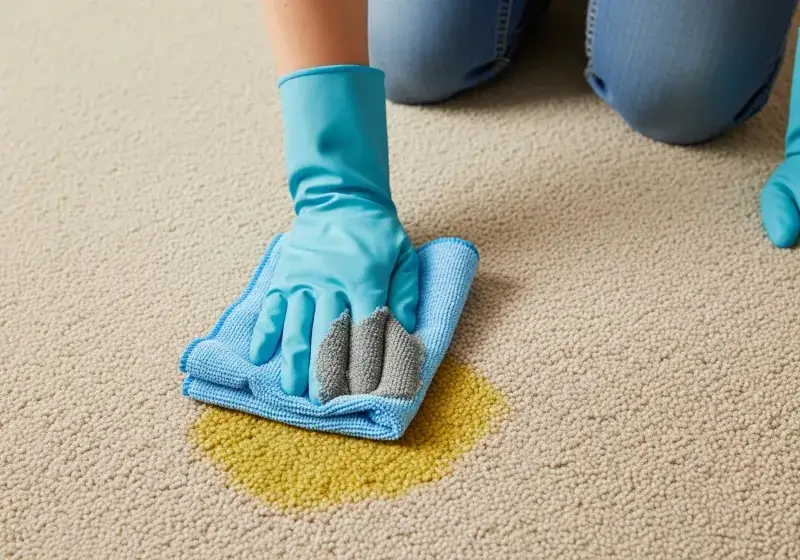Use paper towels or a microfiber cloth to blot the area gently. Press firmly to absorb as much liquid as possible. Rubbing spreads the stain and pushes urine deeper into carpet padding or upholstery foam.