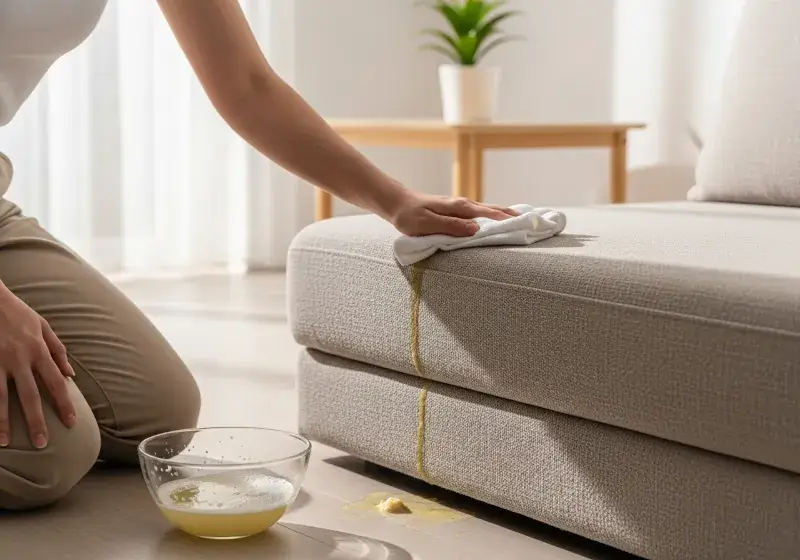 Upholstery absorbs stains quickly, so minimal liquid is key.