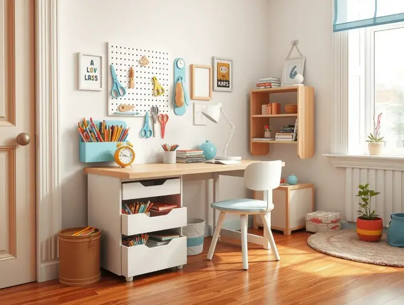 A study space should have only the essentials: pencils, paper, a lamp, and one or two tools. Too many items make it harder for children to concentrate. A clean desk sets the tone for homework time and teaches productivity habits early.