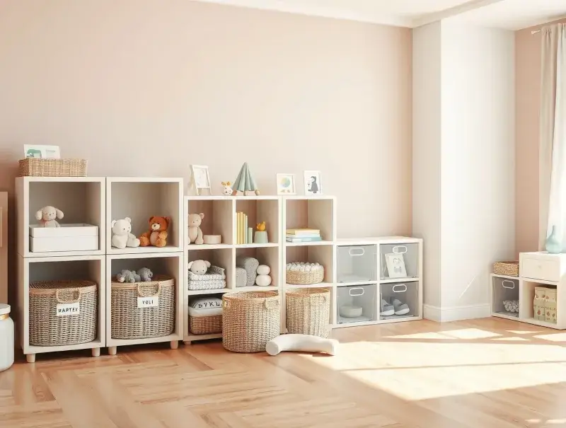 Shelves at child height encourage independence. Kids can grab toys without assistance and learn where items should go. Low shelves also reduce the risk of climbing accidents. Look for cube shelving systems, which are flexible and pair well with fabric bins.